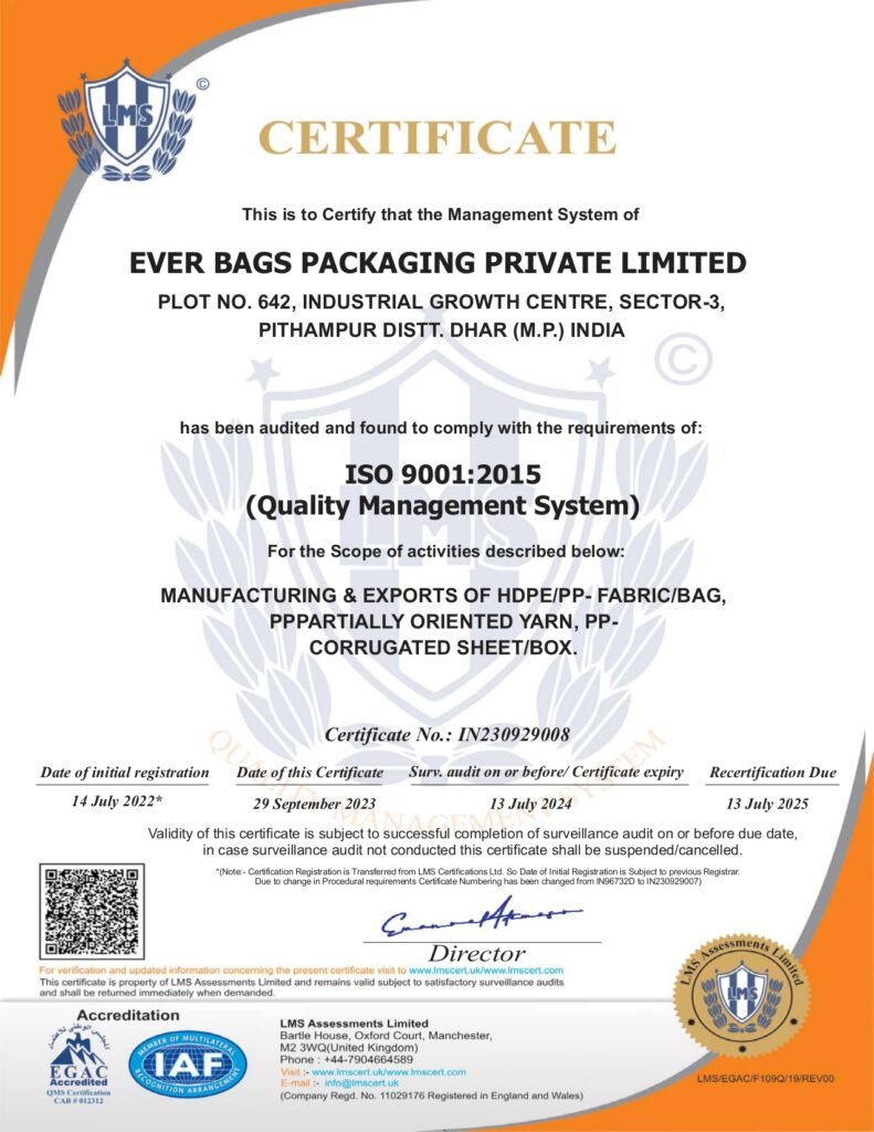 We, EVERBAGS PACKAGING PVT LTD is one of the strongest manufacturers and suppliers in the Indian domestic market and one of the fastest growing exporters. Our product range includes various types of PP Corrugated Flute Sheets, PP CORRUGATED Boxes and PP Floor Guard, Crimp Yarn, Multifilament Yarn, Mulch Film, Barasati Sheet and Recycled PP Granules. EVERBAGS PACKAGING PVT LTD was Established in January 2020, and uses state of the art Plant and Machineries for top rated finished products. Our manufacturing facilities are ISO 9001:2015 certified. The company has made brisk growth in recent years and we now have a strong presence in both domestic and international markets.